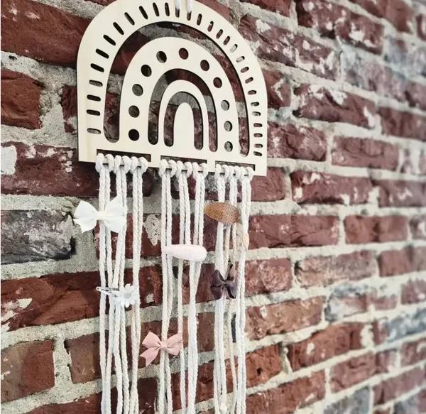 De haarclip hanger 'regenboog' heeft (zonder koord) een afmeting van 27 x 23,5 cm.