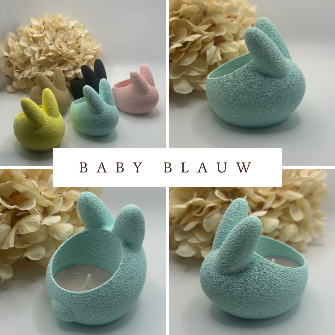 De waxinelichthouders 'Pasen' zijn verkrijgbaar in 5 verschillende kleuren namelijk Zwart, Beige, Zacht Roze, Geel of Baby Blauw en worden geleverd zonder led-verlichting.