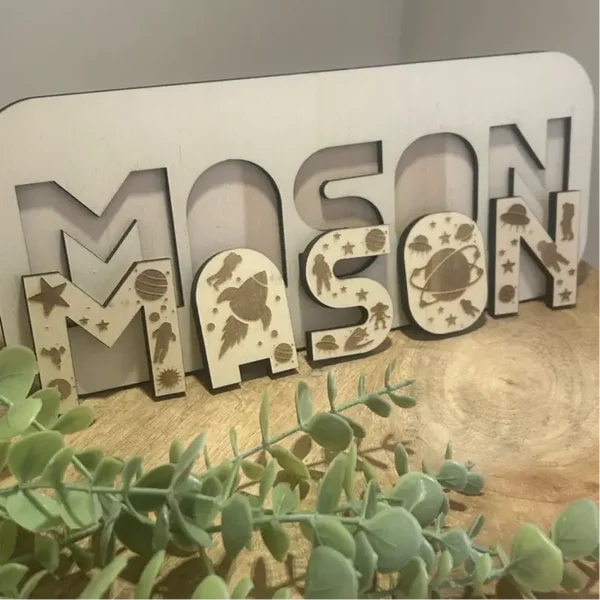 De naampuzzel wordt gemaakt van écht hout waardoor elke puzzel er anders uit komt te zien. De afmeting van de standaard maat is 12x29cm. Wanneer er wordt gekozen voor een extra lange puzzel, wordt de puzzel langer (bij een lange naam) of groter (bij een dubbele naam) gemaakt. Indien gewenst kan er vooraf een afbeelding worden gestuurd zodat u een idee heeft hoe de puzzel er uit komt te zien!