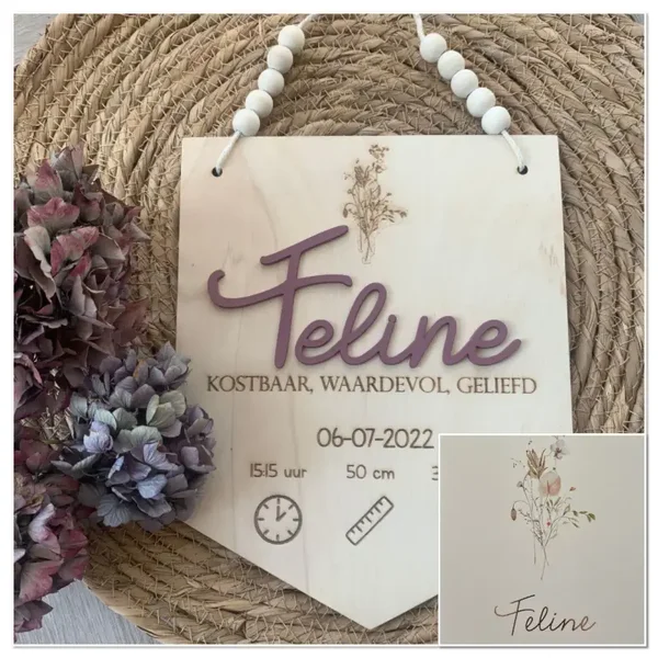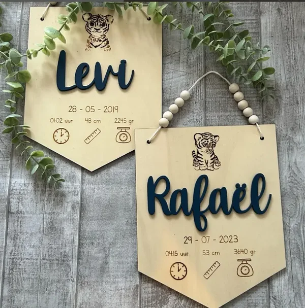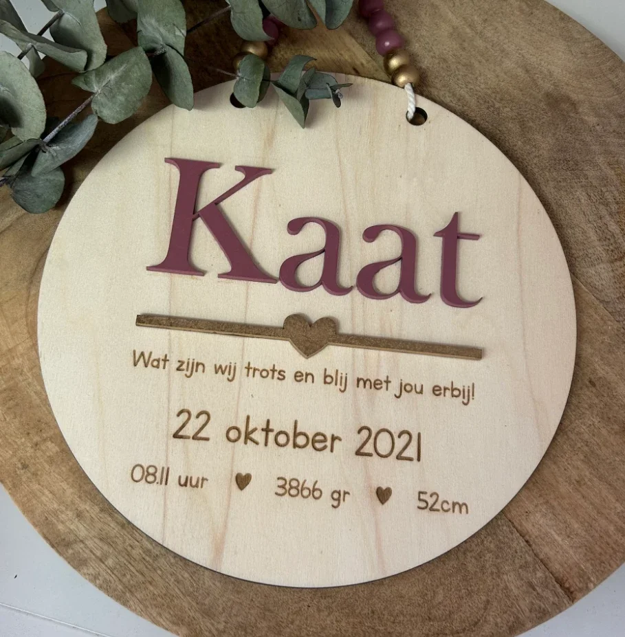 Maak de geboorte extra bijzonder met een geboortebord dat helemaal past bij jullie kleintje. Een prachtige manier om de naam te laten stralen én een blijvende herinnering voor later.